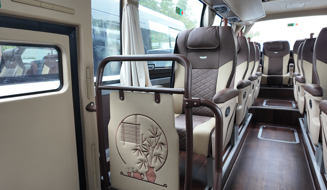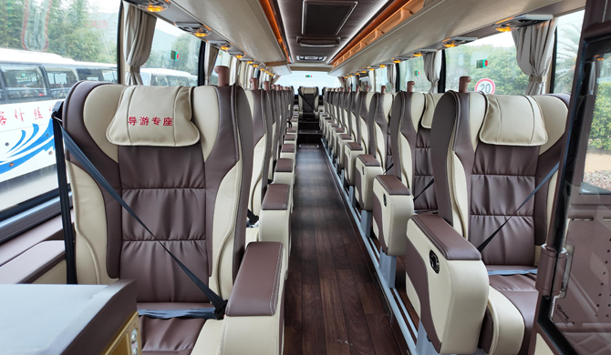 當被問及新V系還有什么打動人心的地方,何麗笑著提到了一個詞——“移動影院”。車內采用“2+1”座椅布局,專為高端旅游市場量身定制。據介紹這批客車旨在滿足國內精品游、長線游及個性化定制線路的需求,因此對車內空間、USB充電接口、飲水機及智能座艙系統等配置均提出高要求,以期為乘客帶來更加卓越的旅途體驗。并且新V系的內飾設計徹底顛覆了傳統客車的沉悶。新中式風格、氛圍燈、更符合人體工學的座椅,甚至被游客評價為像“移動影院”。